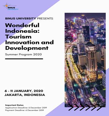 The Tourism Innovation and Development program is a one-week program that provides an opportunity to experience Jakarta as a vibrant metropolitan center of Asia's lifestyle and fast-growing business.