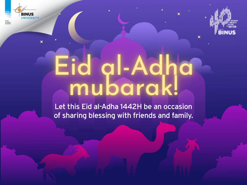 Let this Eid al-Adha 1442H be an occasion of sharing blessing with friends and family. Heartiest regards to you, your colleagues, and your family from BINUS UNIVERSITY!