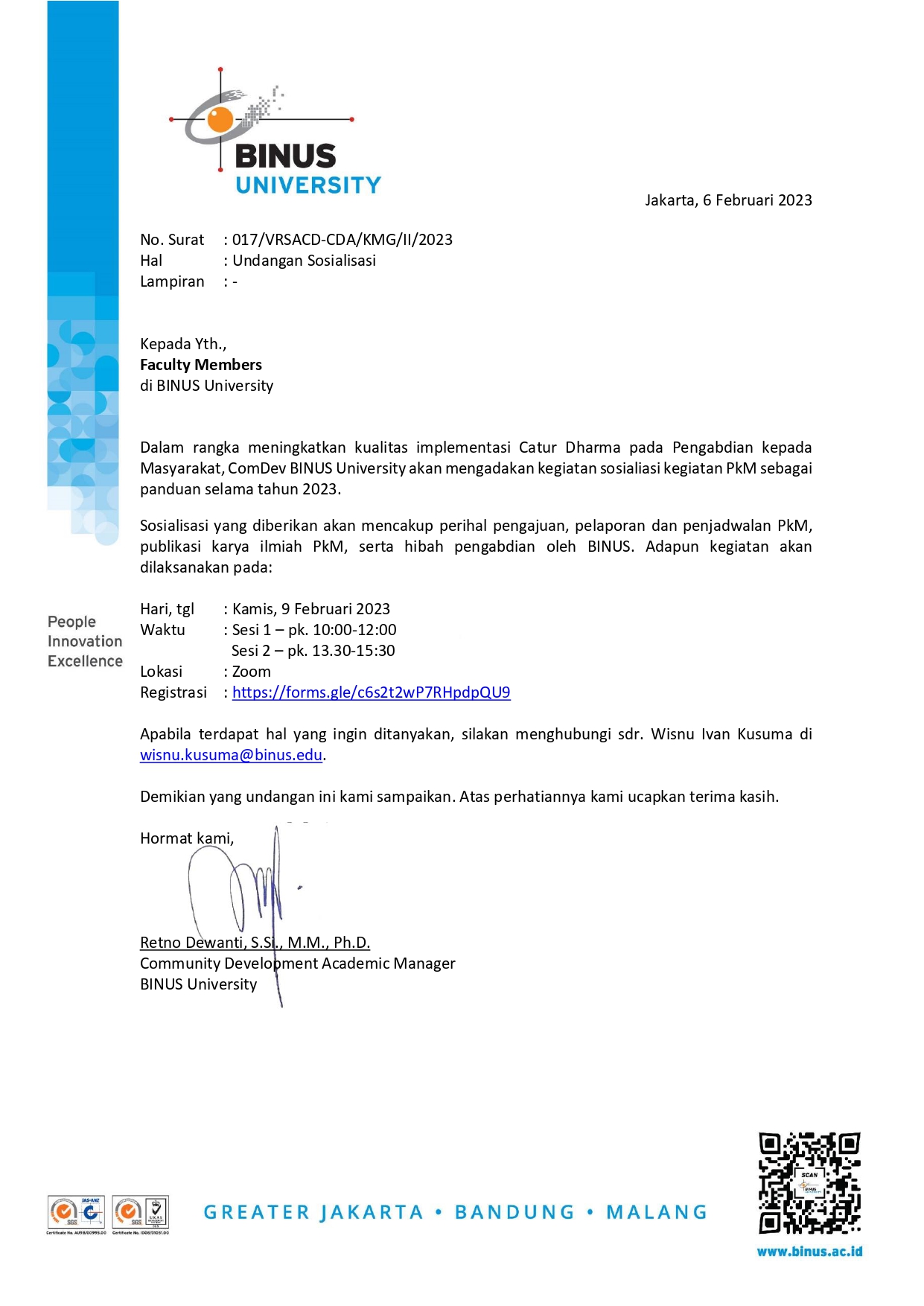 Cc: Retno Dewanti <retnodewanti at binus.edu>; Puti Minang Anjarani <puti.anjarani at binus.edu>; Maryani <yanie at binus.edu>; Ria Ekasari <ria.ekasari at binus.edu>; Herlina <Herlinad at binus.edu>; Ayu Swarnasari.D.E <ayu.e at binus.edu>