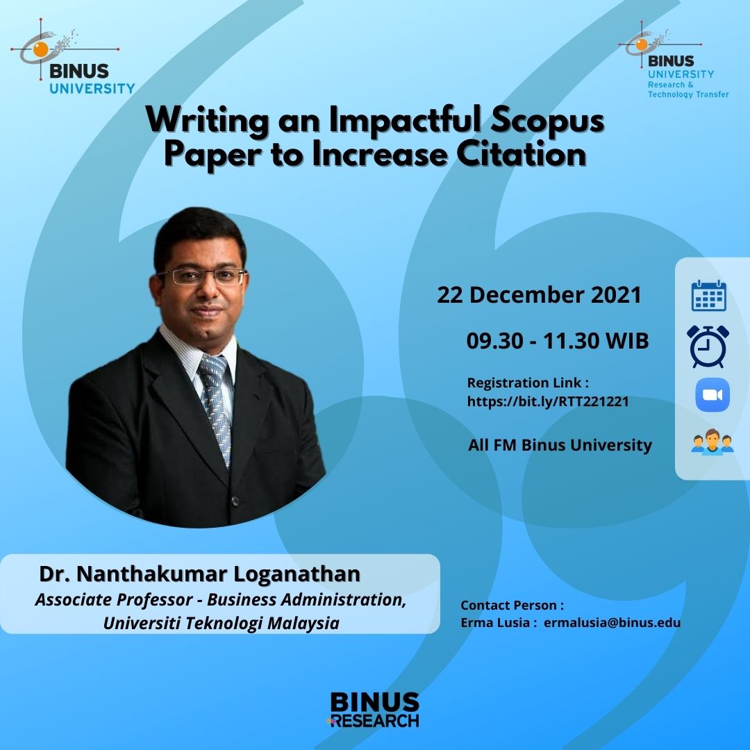 "Writing an Impactful Scopus Paper to Increase Citation" yang akan diselenggarakan pada: