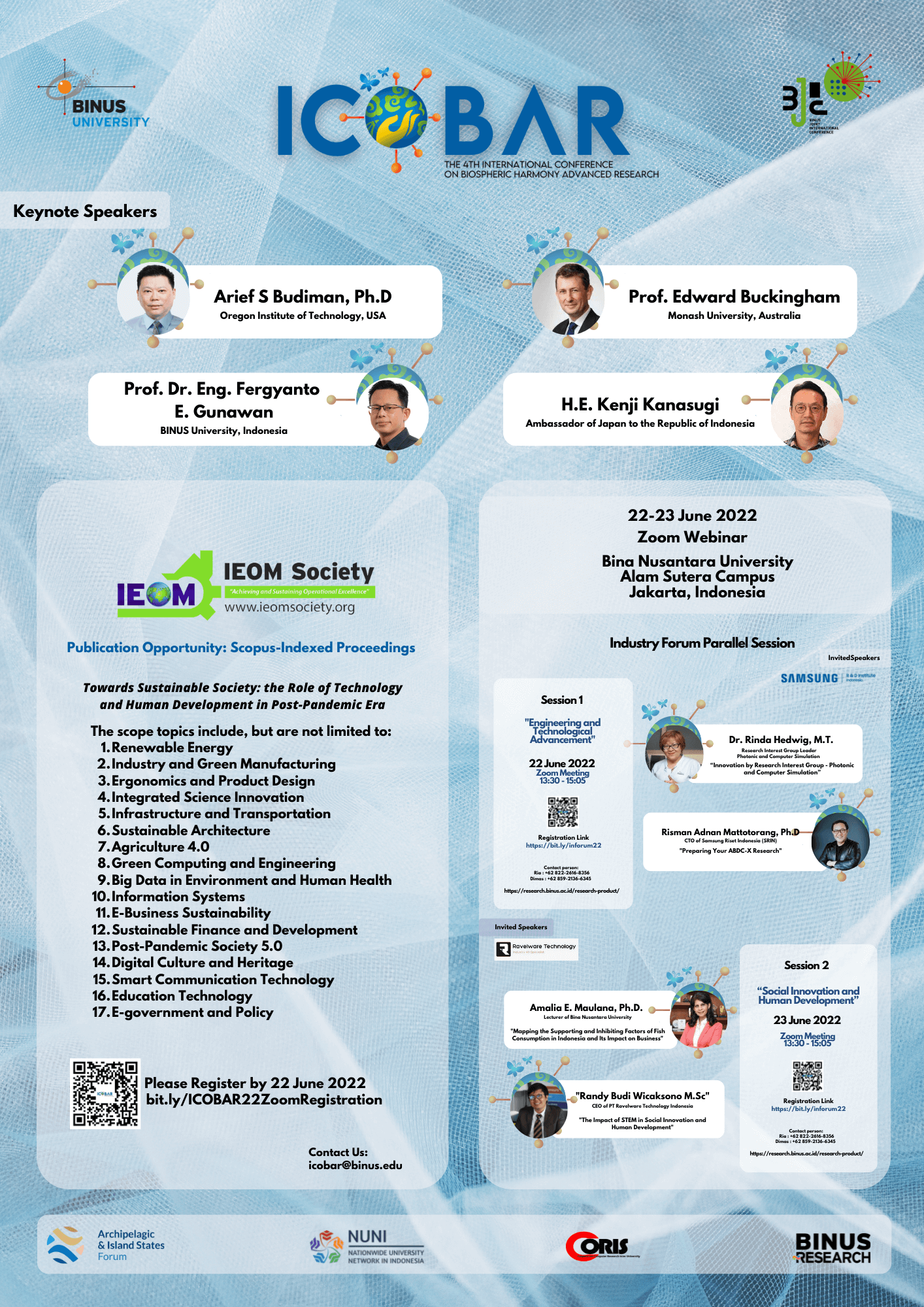 08:30 - 10:30 PM - Keynote Session: Prof. Fergyanto E. Gunawan from BINUS University, Indonesia & His Excellency Mr. H.E. Kenji Kanasugi, Ambassador of Japan to the Republic of Indonesia