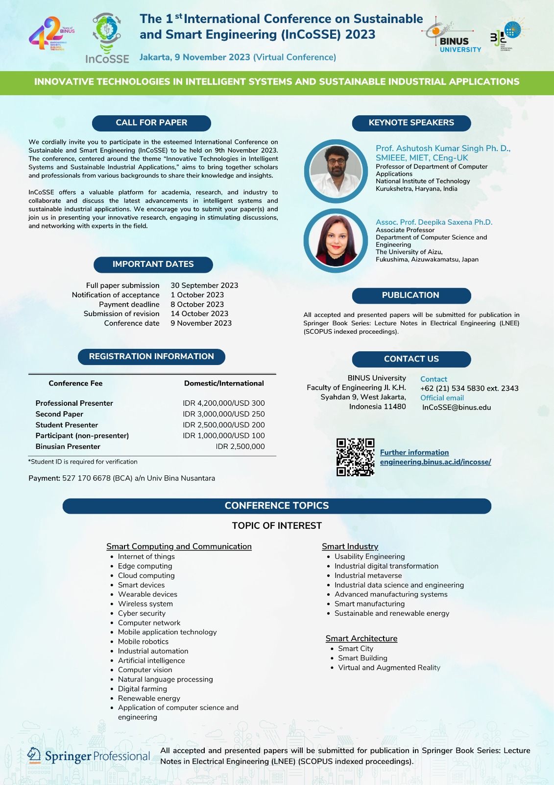 Article submission, template, etc. : <https://www.morressier.com/call-for-papers/64c25fe4f690ef0012a9a618> https://engineering.binus.ac.id/incosse/post/submission-incosse/