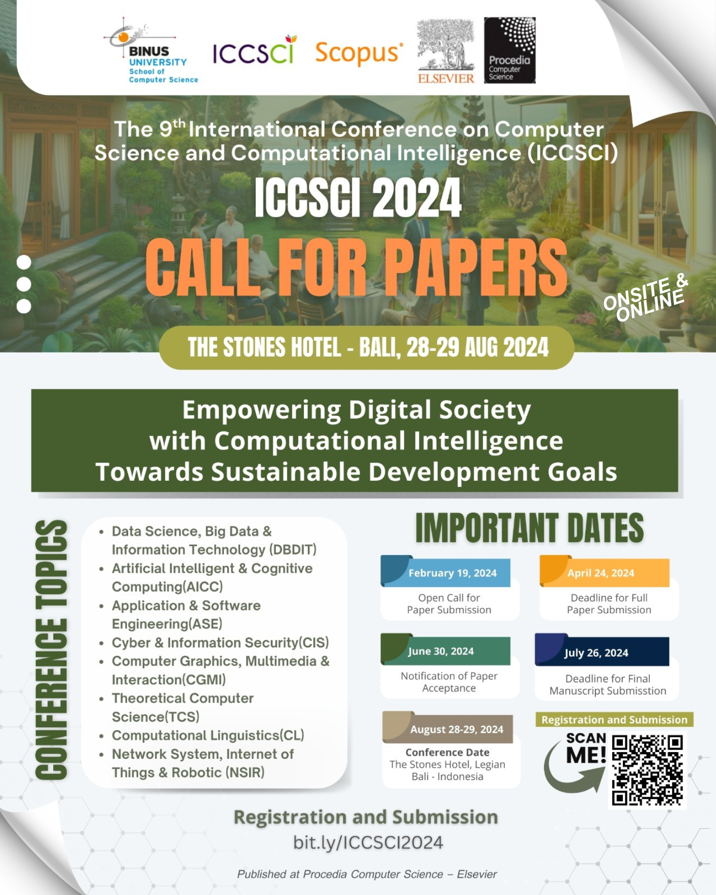 We warmly invite the entire Bina Nusantara academic community and beyond to submit their scholarly papers. This year, ICCSCI will adopt a hybrid format combining onsite and online participation to accommodate a wider audience and foster greater collaboration.