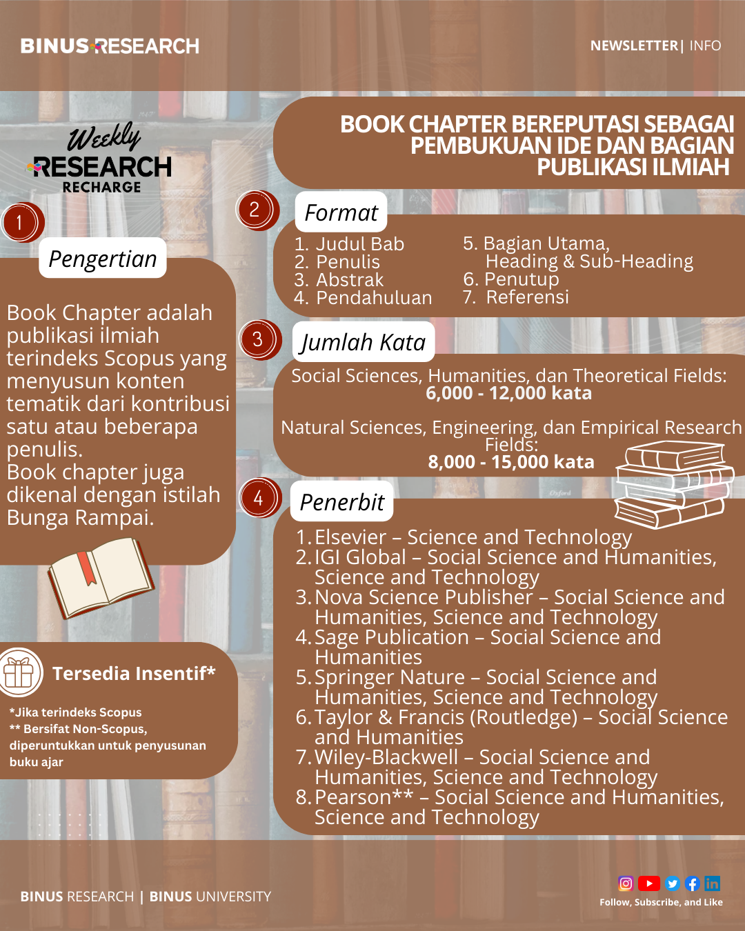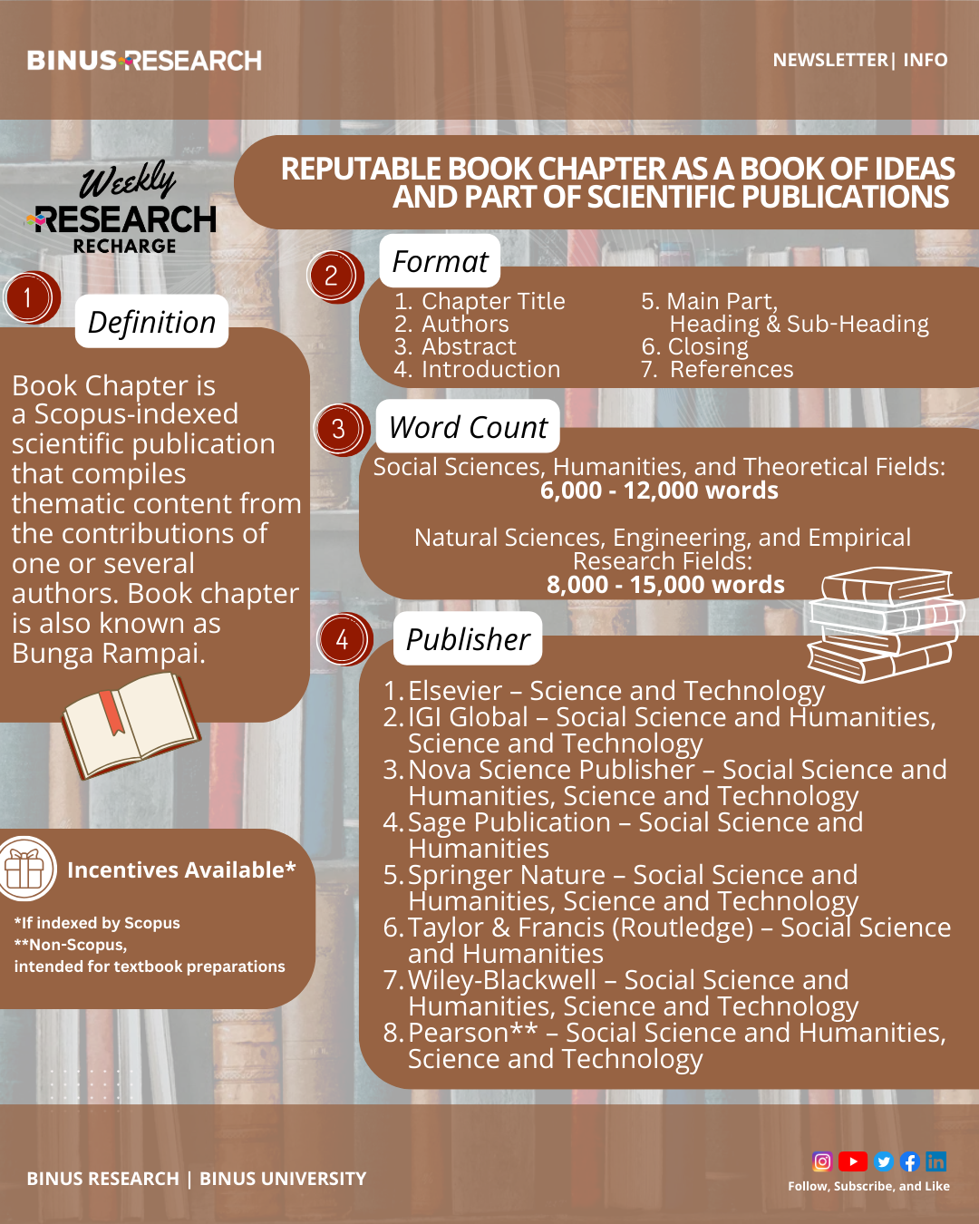 Weekly Research Recharge 22 July 2024 - Reputable Book Chapter as a Book of Ideas and Part of Scientific Publications