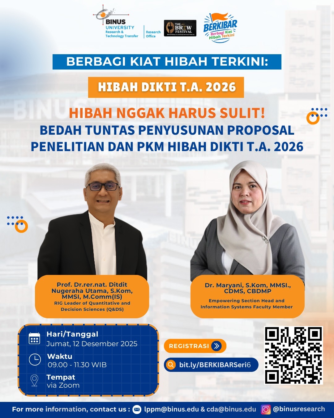 Jika ada pertanyaan lebih lanjut silakan hubungi kami melalui email lppm at binus.edu