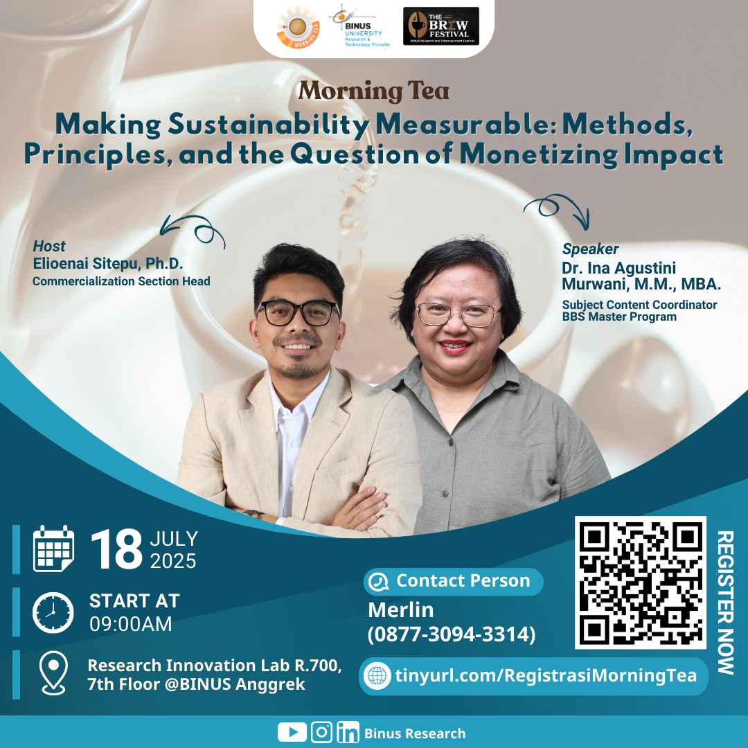 Kami mengundang Bapak/Ibu untuk berpartisipasi dalam acara Morning Tea yang diselenggarakan oleh BINUS Research, dengan tema: