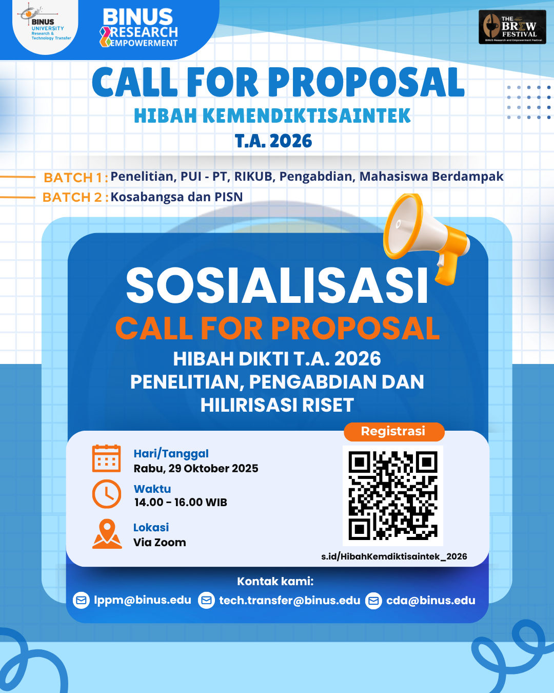 [Undangan Sosialisasi] - Call for Proposal Hibah DIKTI T.A. 2026 : Penelitian, Pengabdian kepada Masyarakat dan Hilirisasi Riset