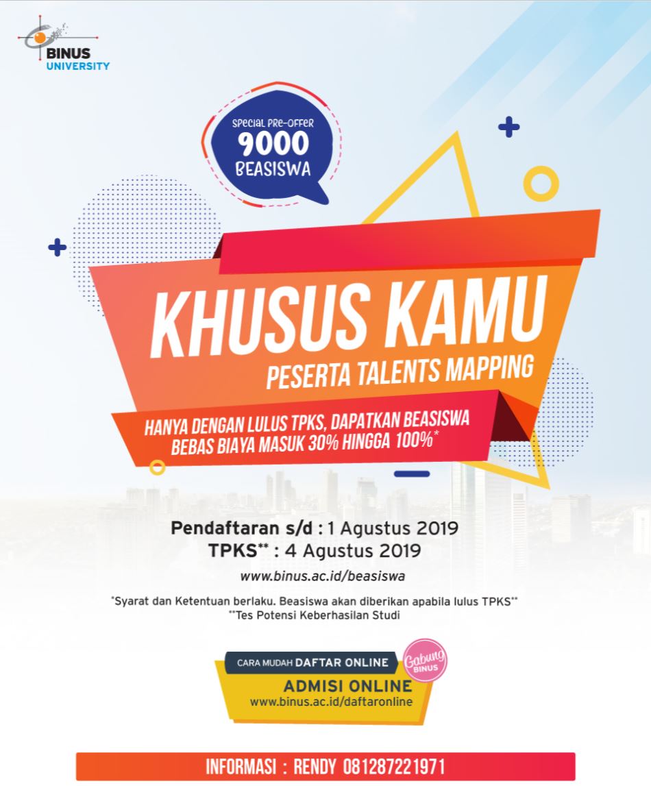 BINUS UNIVERSITY : 9000 Beasiswa Khusus Kamu - Peserta Talents Mapping