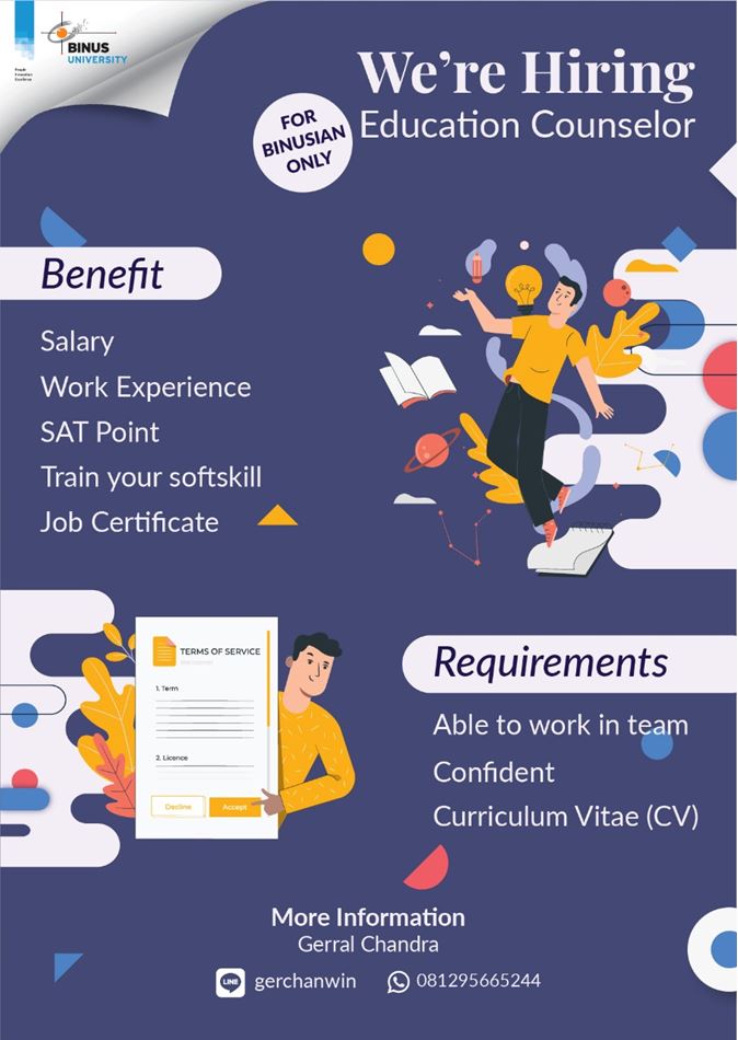 Hiring Education Counselor in BINUS UNIVERSITY