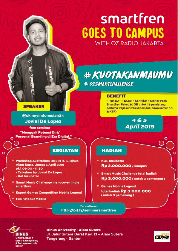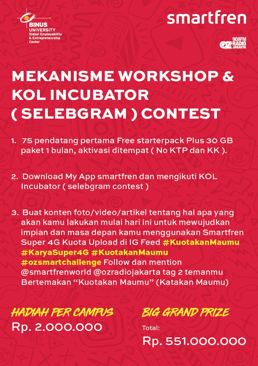 Benefit: Poin SAT, Snack, Sertifikat, Starter Pack Smartfren (untuk 75 orang pertama)