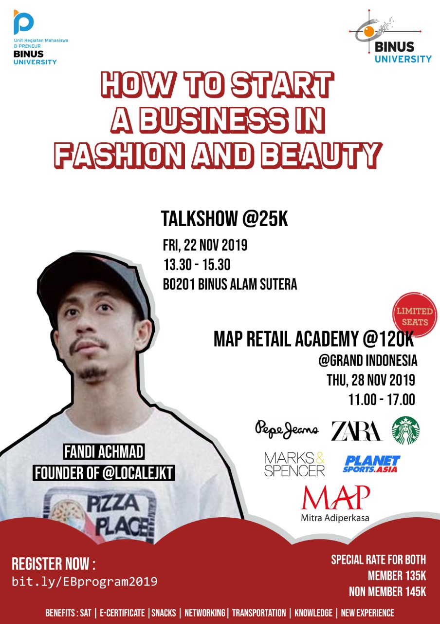 Tema: “Business in Fashion and Beauty", terdiri dari Acara sbb (bisa daftar salah 1 atau ke-2 nya):