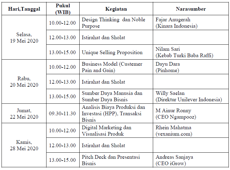 Menindaklanjuti surat Direktur Pembelajaran dan Kemahasiswaan Nomor 736/E2/TU/2020 tanggal 12 Mei 2020, tentang pengumuman pelaksanaan Workshop Kewirausahaan tahun 2020 untuk mahasiswa sarjana di seluruh Indonesia.