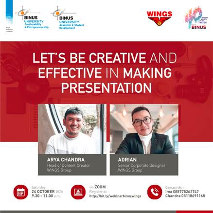 Yukss.. Join di Webinar "Let's Be Creative and Effective In Making Presentation". Disini teman-teman akan diberikan Tips & Triks cara membuat presentasi yang bagus dan menarik dari ahlinya seorang Content Creator dari Wings Group.