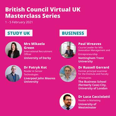 We invite you to join us for the first ‘British Council Virtual UK Masterclass Series’ in South East Asia from Monday, 1 February to Friday, 5 February 2021 via TEAMS live platform.