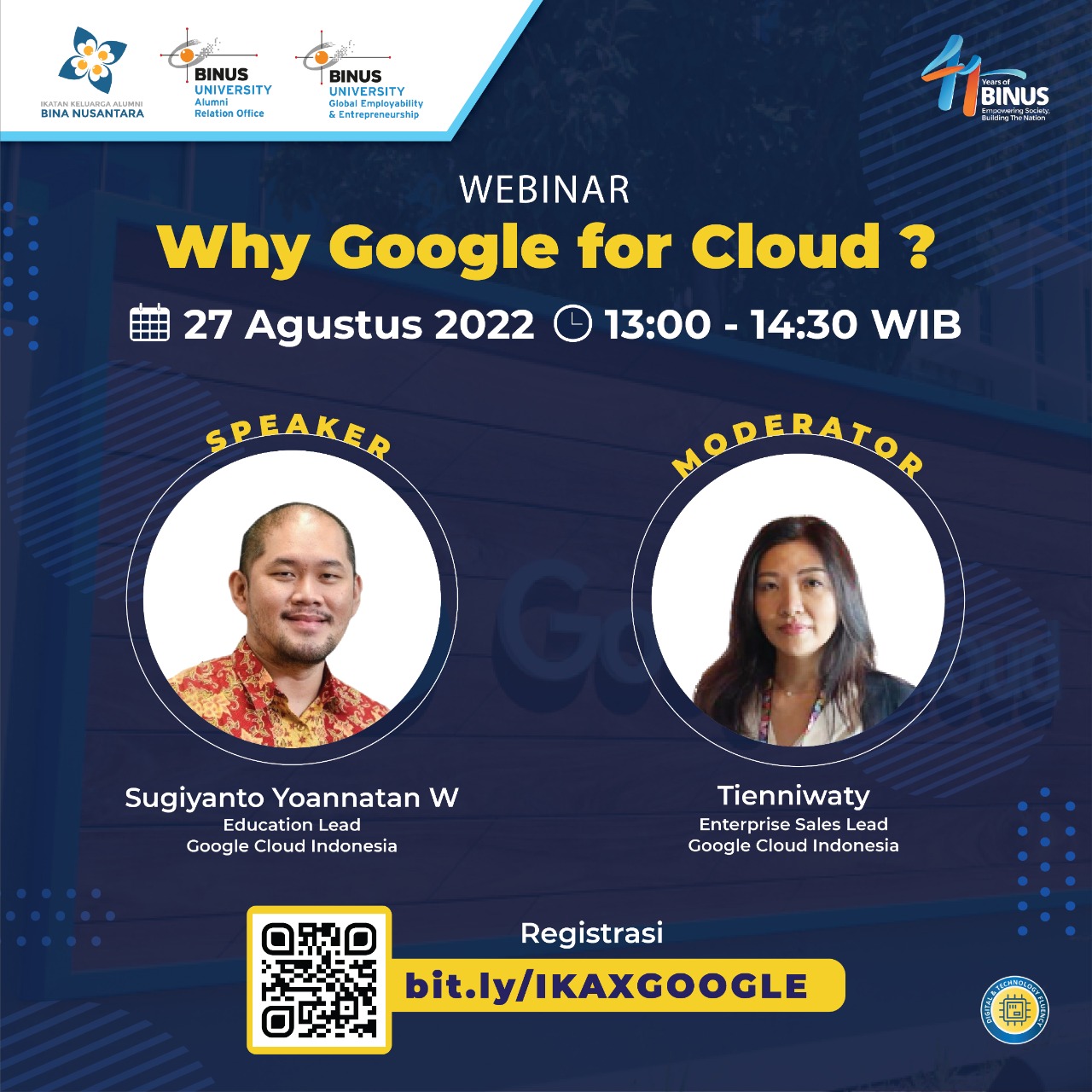 IKA BINUS presents a Webinar with the theme "Why Google for Cloud?" in collaboration with Google Indonesia which will be held on: