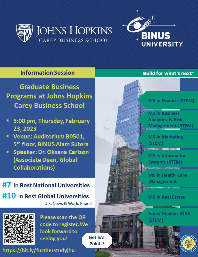 Join us with Johns Hopkins Carey Business School and discover your opportunity to pursue master degree in the U.S.