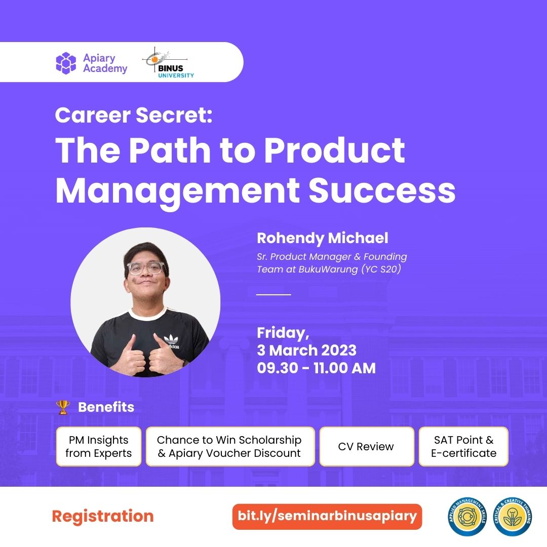 If you want to become a Product Manager but don't know where to start, then this event hosted by Apiary Academy and Binus University is the answer for you.