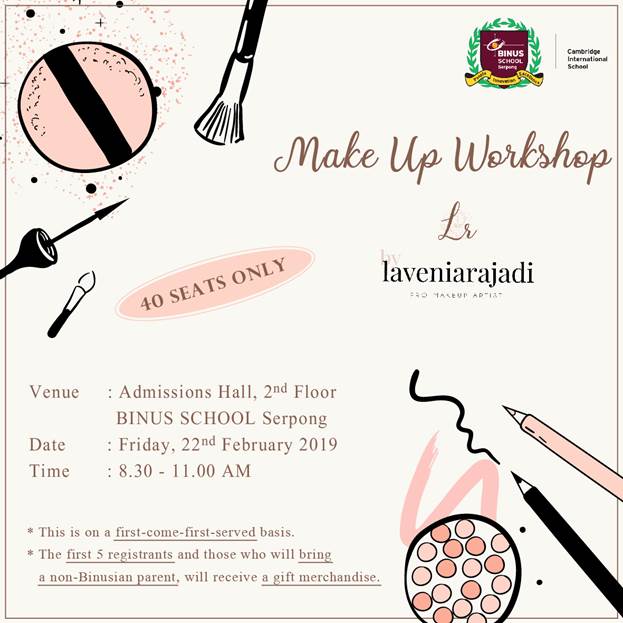 BINUS SCHOOL Serpong would like to invite you to come and join us for the “F3P: Make Up Workshop with Lavenia Rajadi.”