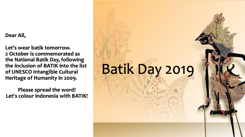 Students and Parents are encouraged to wear batik tomorrow to celebrate Batik Day.