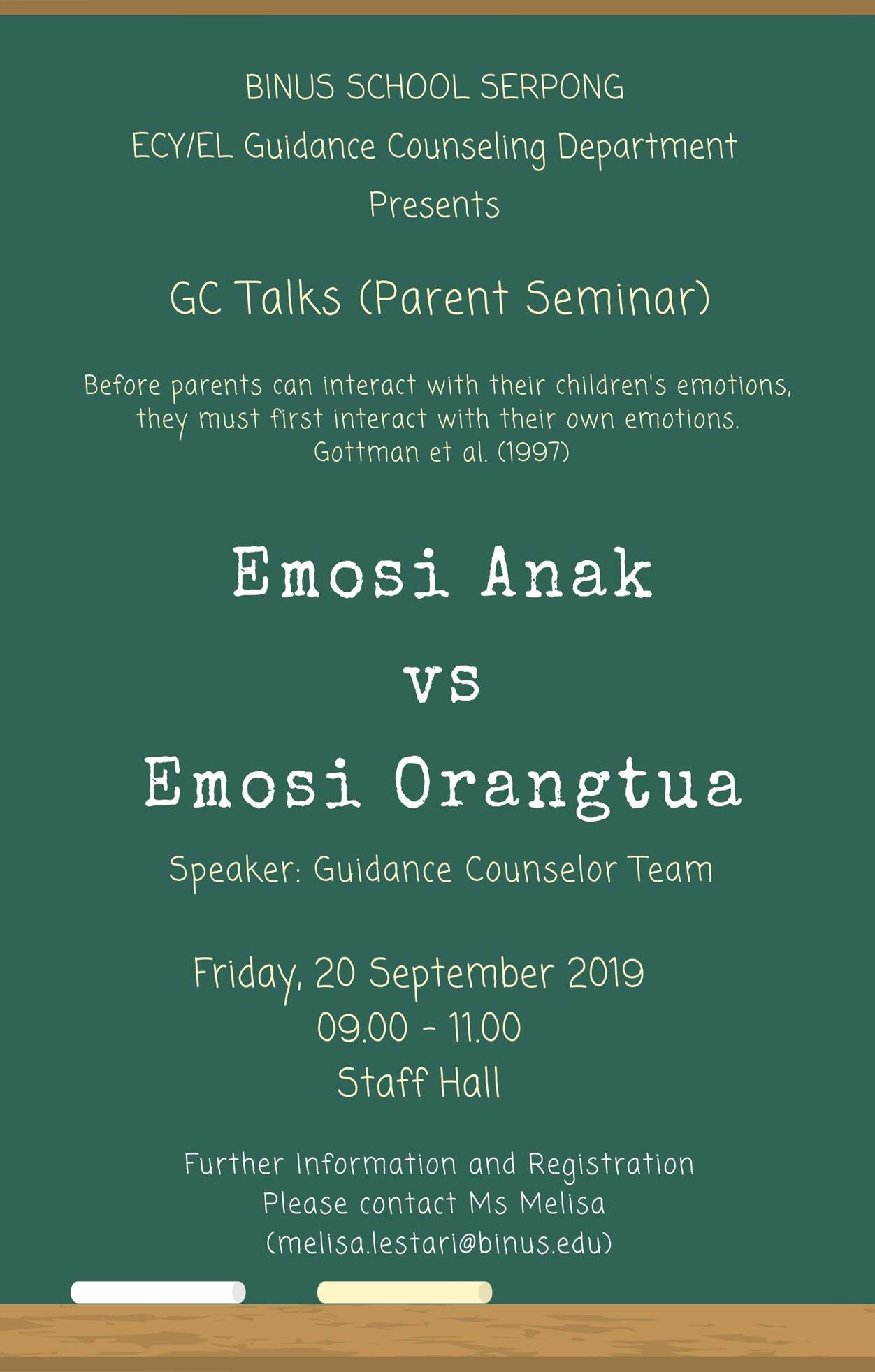 Parent Seminar : Emosi Anak vs Emosi Orangtua