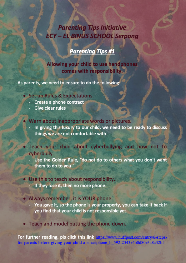 Parenting Tips #1 (Parenting Initiative by ECY - EL BINUS SCHOOL Serpong)