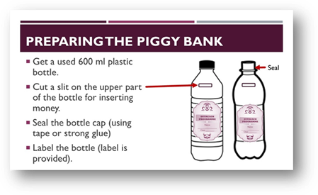 This e-mail marks the start of our 15-Day Piggy Bank Challenge. Within the next 15 days, students are encouraged to save some money every day. For this purpose, each student needs an empty plastic bottle (600 ml) as their piggy bank. This piggy bank will be kept at home as the saving is to be done at home. The saving period is 28 Feb – 14 March 2019. The piggy bank is to be brought to school 15 March 2019.