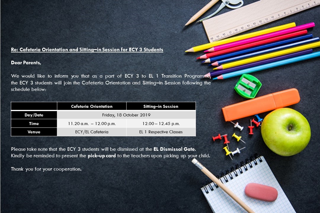 ECY 3 Cafeteria Orientation and Sitting-in Programme